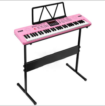 HUASHENG Teaching Functional 61 Keys Electric Organ LCD Display Instruments Piano Keyboard Set Pink